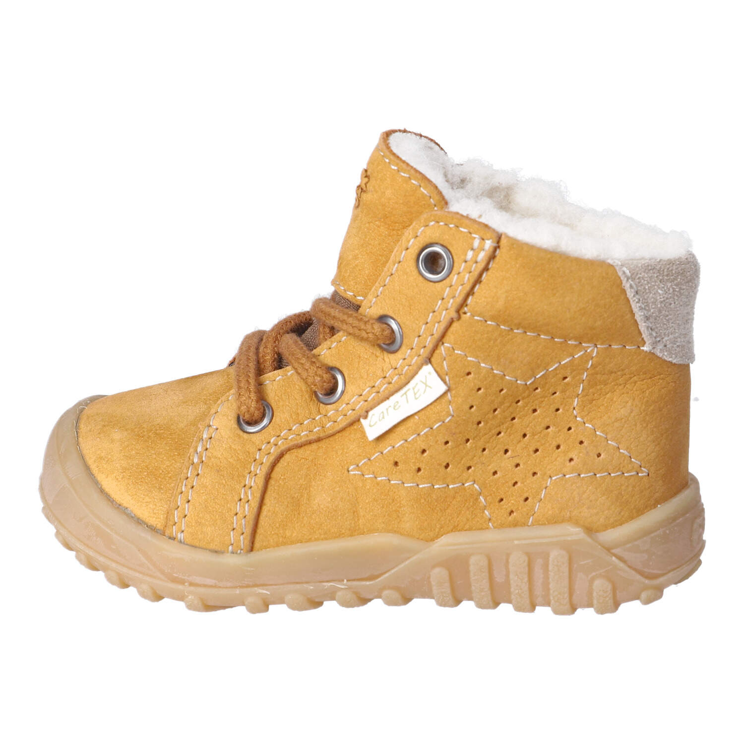 Schnürstiefel sollten gut sitzen, aber auch genug Platz bieten, damit die Füße Deines Kindes sich bewegen können. Zwischen den Zehen und der Schuhspitze sollte etwa eine Daumenbreite Platz sein. Probiere die Stiefel am besten mit dicken Socken an, besonders im Winter.